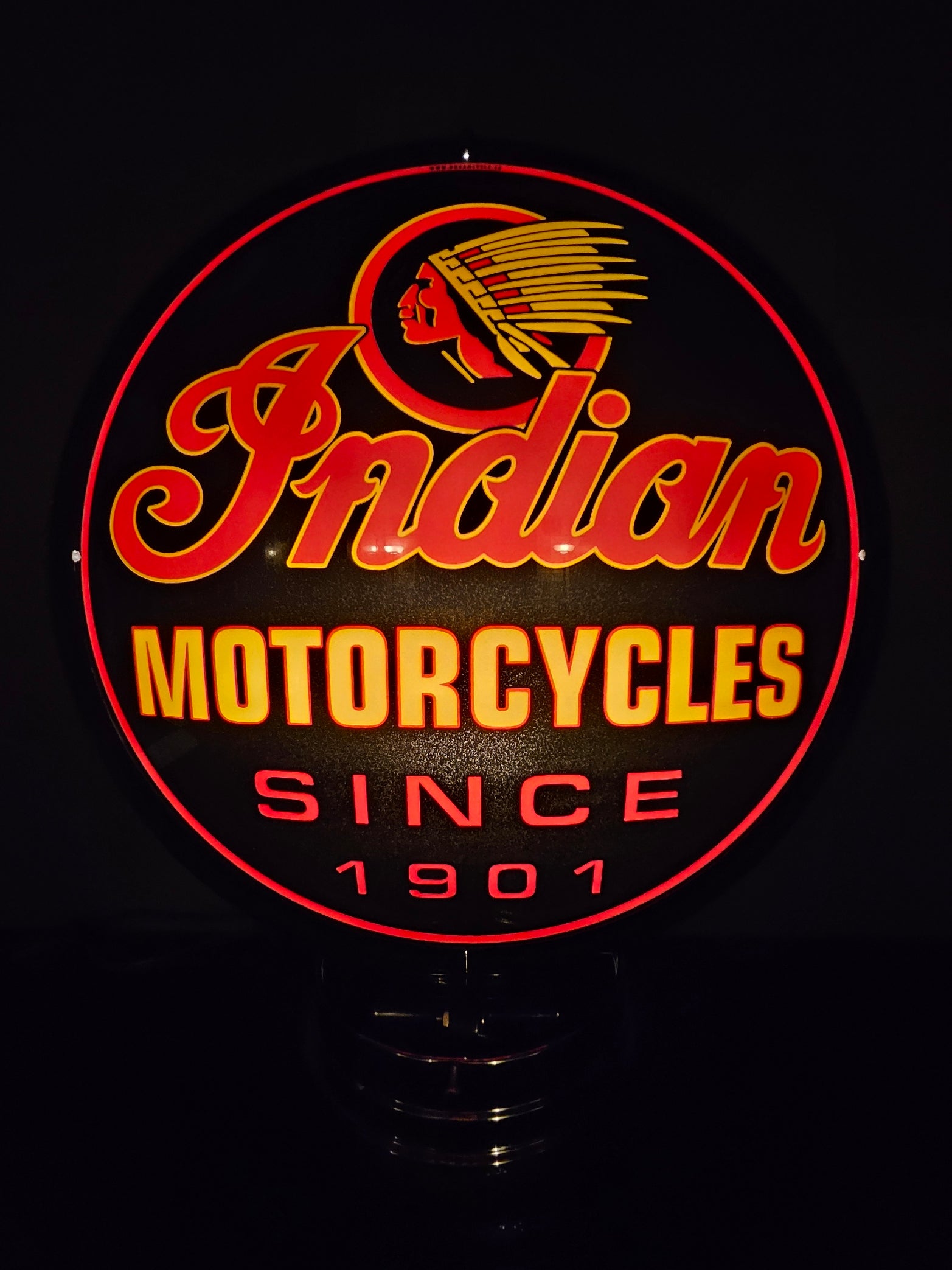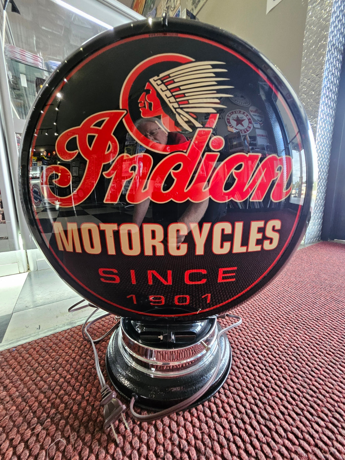 Gas pump globe, Indian, Beautiful hand made glass lenses, 13.5”. Double sided, 2 lenses.
